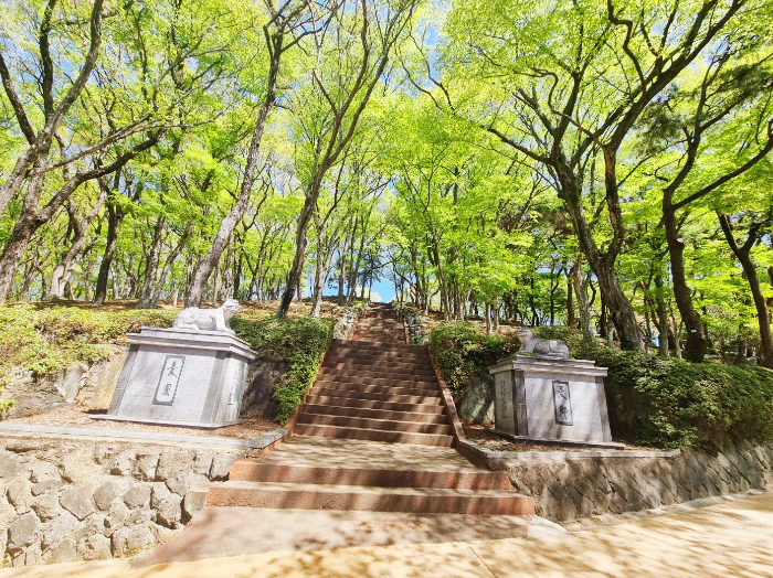 두 개의 동상 사이에 펼쳐진 계단길로 올라가 보았다.