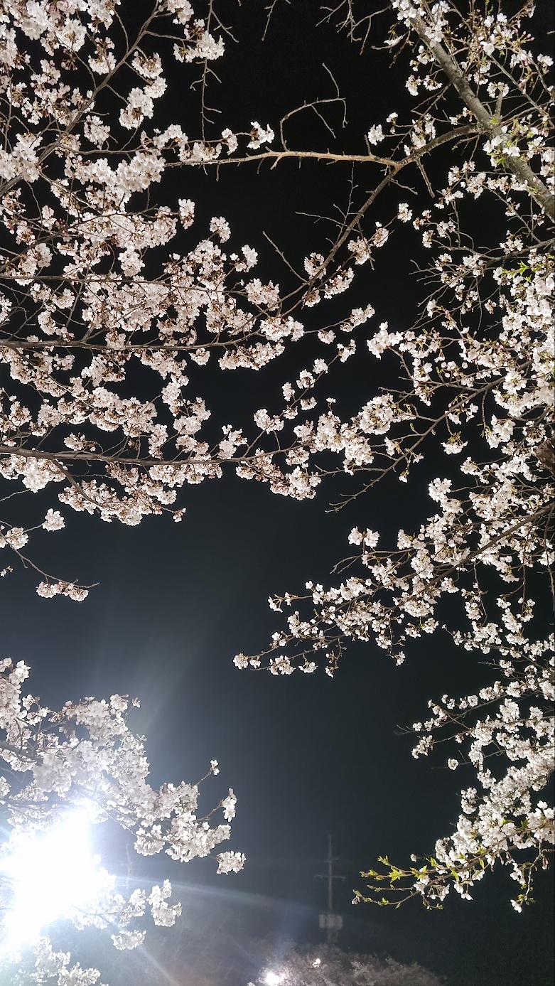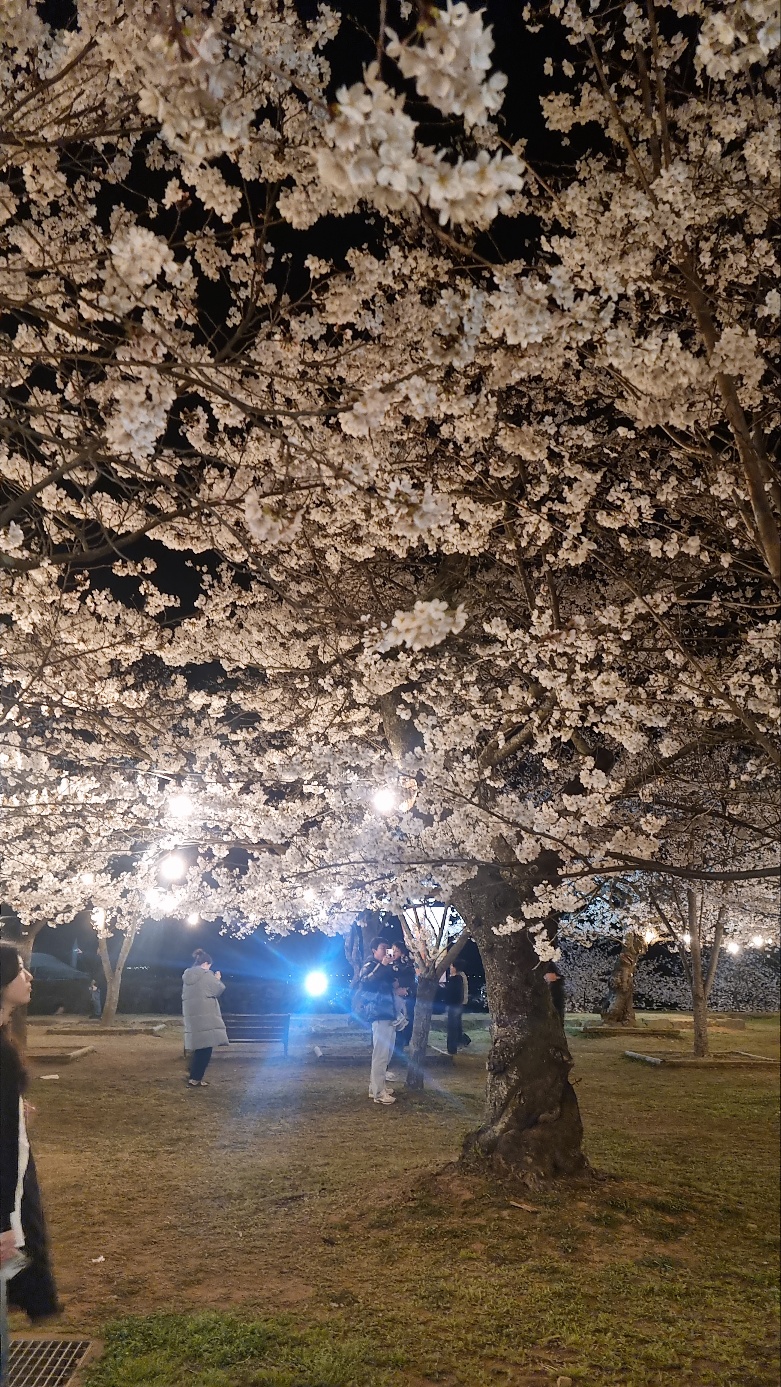 가로등 불빛과 조명이 벚꽃을 부드럽게 비추며 낮과는 또 다른 매력을 자아냈고,