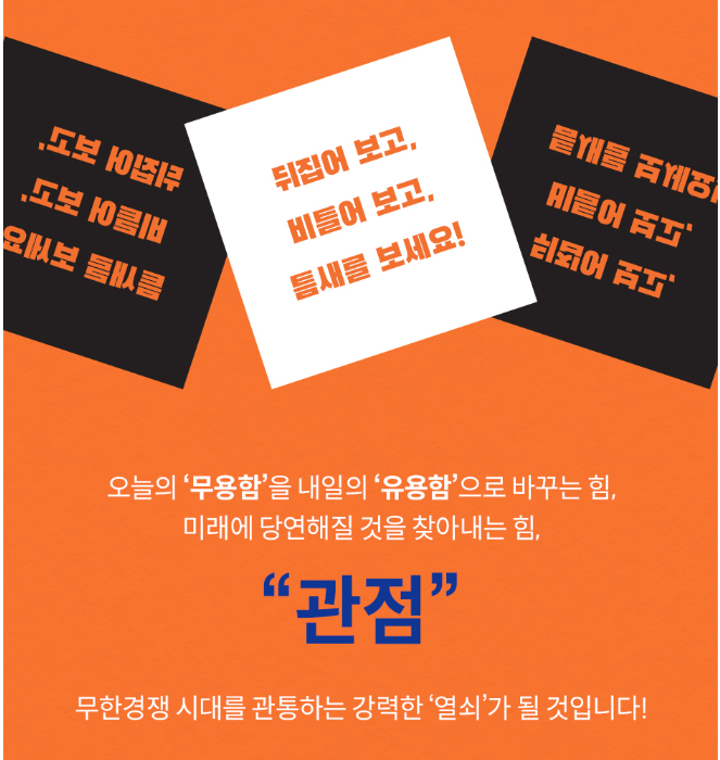 우리도 관점을 바꿀 수 있다. 당연함을 부정하면 된다. 당연함을 깨고 다르게 생각해야 한다. 남들이 못 보는 것을 보려고 노력하라.