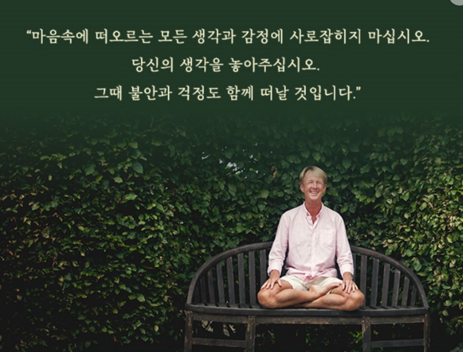 그는 명상이 좋다는 이야기를 떠올렸다. 호흡을 관찰하고 추적하기 시작했다. 처음에는 집중이 되지 않았지만 시간이 흐르자 마음이 잠잠해졌다. 갖가지의 불안에서 점점 평온을 유지하기 시작했다. 고요한 공간에서 불쑥 어떤 생각이 떠올랐다. "앞으로 나아갈 때가 됐어." 마음을 정하는 데 5초도 걸리지 않았다. 며칠 뒤, 그는 사직서를 제출했다.