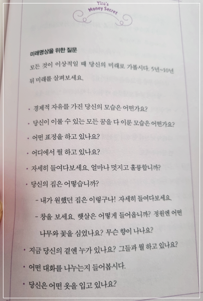 그녀는 고단한 삶에서 출구를 찾기 위해 끈질기게 노력해 왔다. 지난 10년간 자수성가한 부자들, 마음의 평화를 누리는 스승들과 대화하며 그들만의 성공비결을 깨닫고 그대로 실천하기를 시도하게 된다. 수많은 경험을 번복하며 가난과 부의 진짜 속성을 알게 되었고 위기를 극복하는 방법도 체득하게 된다. 외부로의 시선에서 벗어나 내면을 바라보기 시작하면서 그녀는 희망의 빛을 발견하게 되었고 비로소 보잘것없는 현실에 끌려다니던 삶에서 벗어나 돈과 운을 끌어당기는 삶을 살게 되었다. 그녀는 유튜브를 통해 자신과 만나는 모든 사람들의 물음표를 느낌표로 바꿔주는 일에 매진하고 있다.