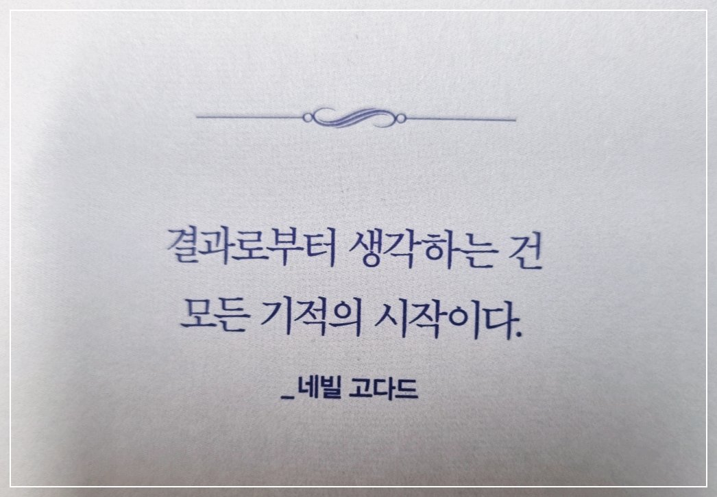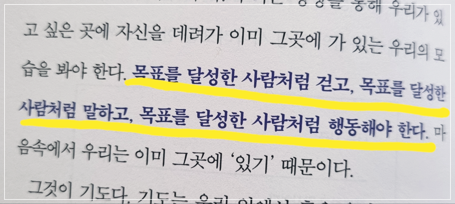 우리는 지금보다 더 정진해야만 한다. 자신이 욕망하는 가치를 그림으로 그리고 글로 써야 한다. 마음속에 이미지를 만들어냈다면 반복을 통해 그 이미지를 잠재의식에 새기고 스스로 느끼도록 해야 한다. 이를 실현해야 한다.