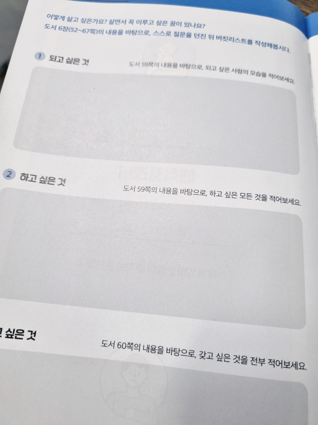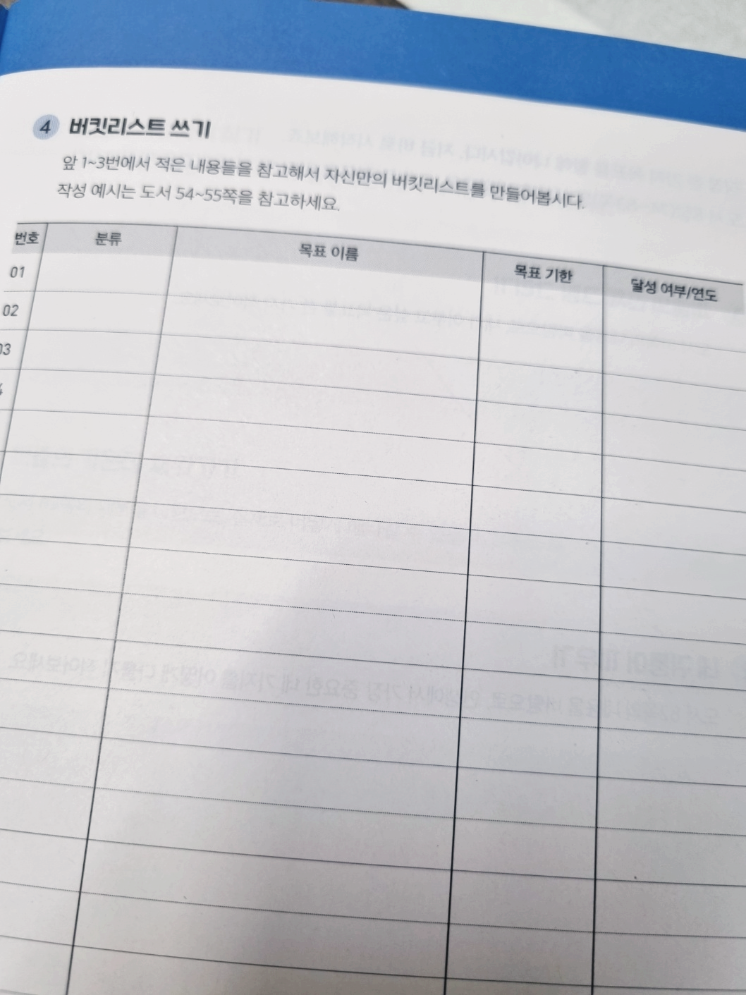 꿈이 '희망' 그 자체라면, 버킷리스트는 '꿈의 목록'이다. 버킷리스트는 죽기 전에 이루고 싶은 일들을 적은 리스트다. 꼭 적어보기를 권한다. 생각나는 대로 그냥 막 써 나가면 된다. 평소 간절히 꿈꾸던 일은 자연스럽게 앞쪽에 자리 잡게 될 것이고 구체적으로 달성 기한도 정해보자.