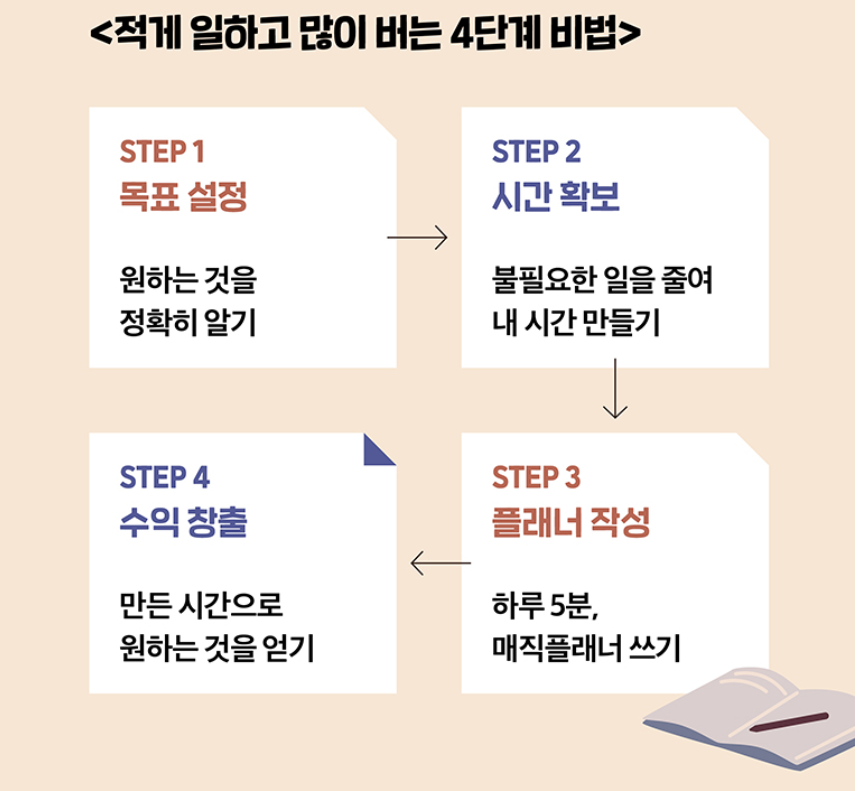 적게 일하고 많이 버는 4가지 비법이 어렵지 않게 짜여 있다.