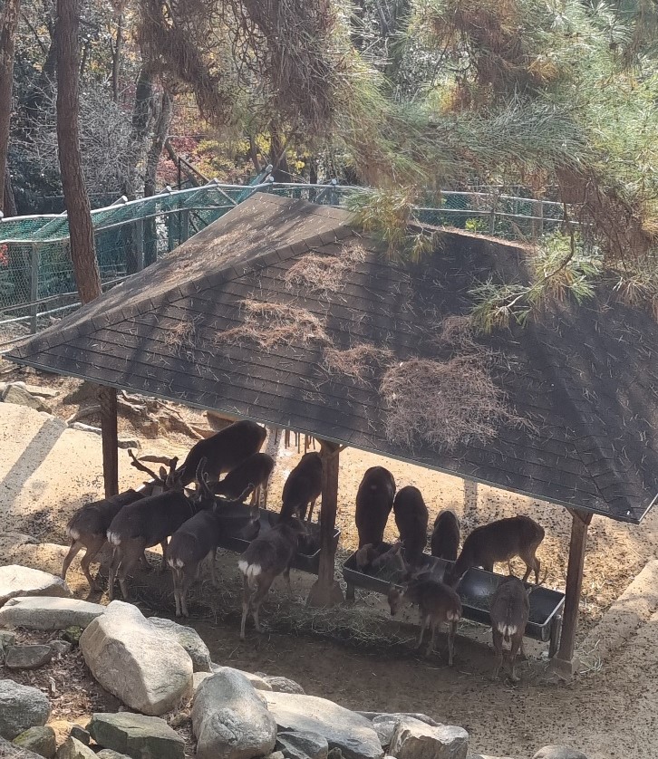 모두 모여 사이좋게 밥먹는 사슴