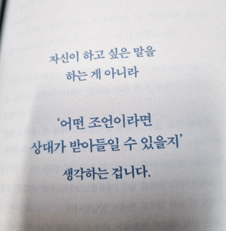 직접 조언을 듣고 싶어 하는 사람에게는 '이 사람이 받아들일 수 있는 조언이 무엇일까?', '어떤 상황이어야 수긍할 것인가' 이 두 가지를 생각한 뒤에 조언하면 상대의 마음에 진심이 전해집니다. 자신이 하고 싶은 말을 하는 것이 아니라 어떤 조언이라면 상대가 받아들일 수 있을지 생각하는 겁니다. 상대의 시선을 중요하게 생각해 주세요
