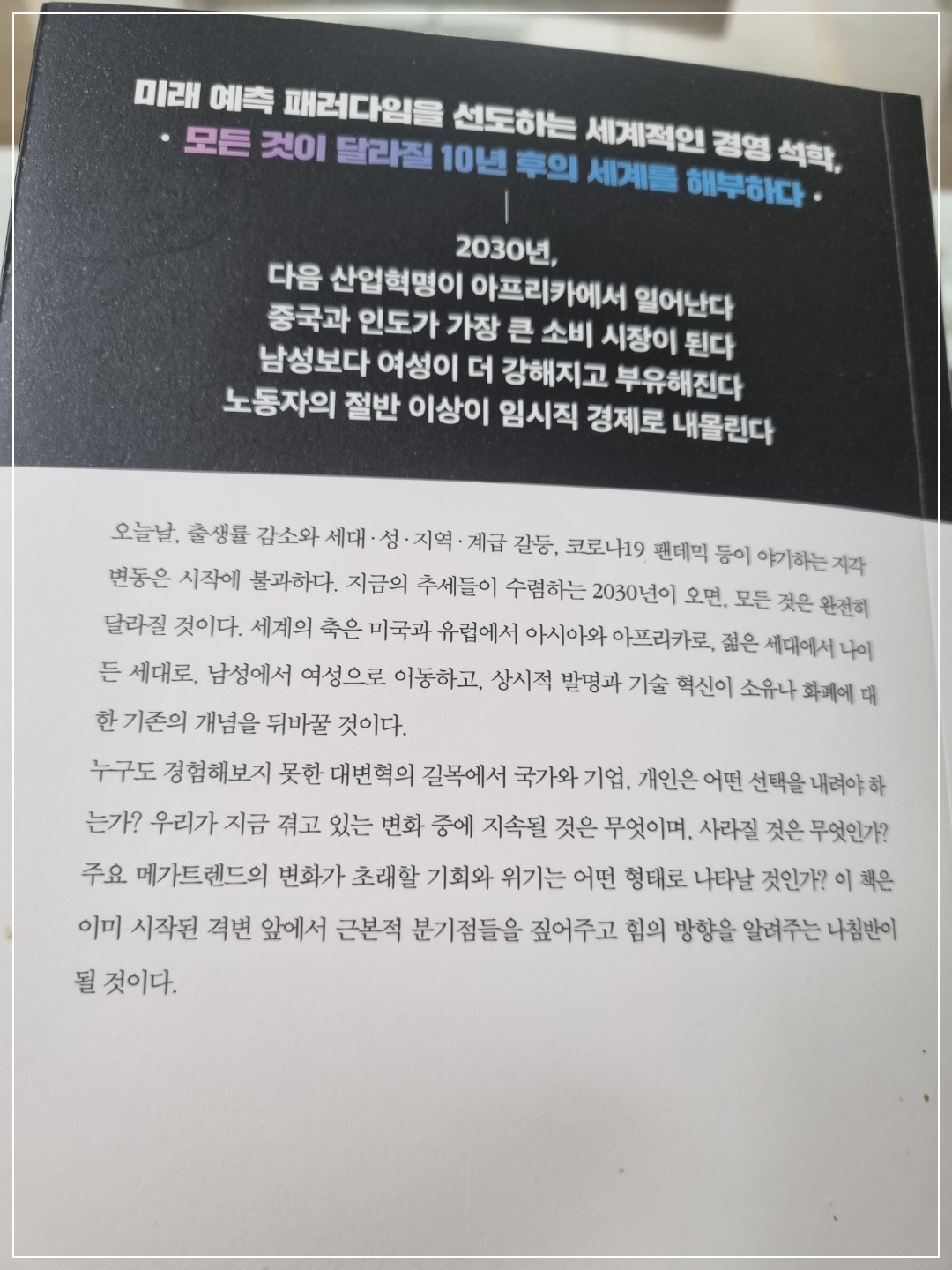 우리는 코로나 19를 겪으면서 이제 코로나 이전으로 되돌아갈 수 없는 세상을 맞이했다. 코로나19가 큰 변화를 가져다주었고 그로 인해 앞으로 오게 될 미래를 최소 5년 이상은 앞당겼다고 한다. 누군가는 이 변화가 두려울 것이고 누군가는 기회로 잡아가고 있을 것이다. 앞으로 우리는 어떻게 준비하고 세상을 봐야 할까?