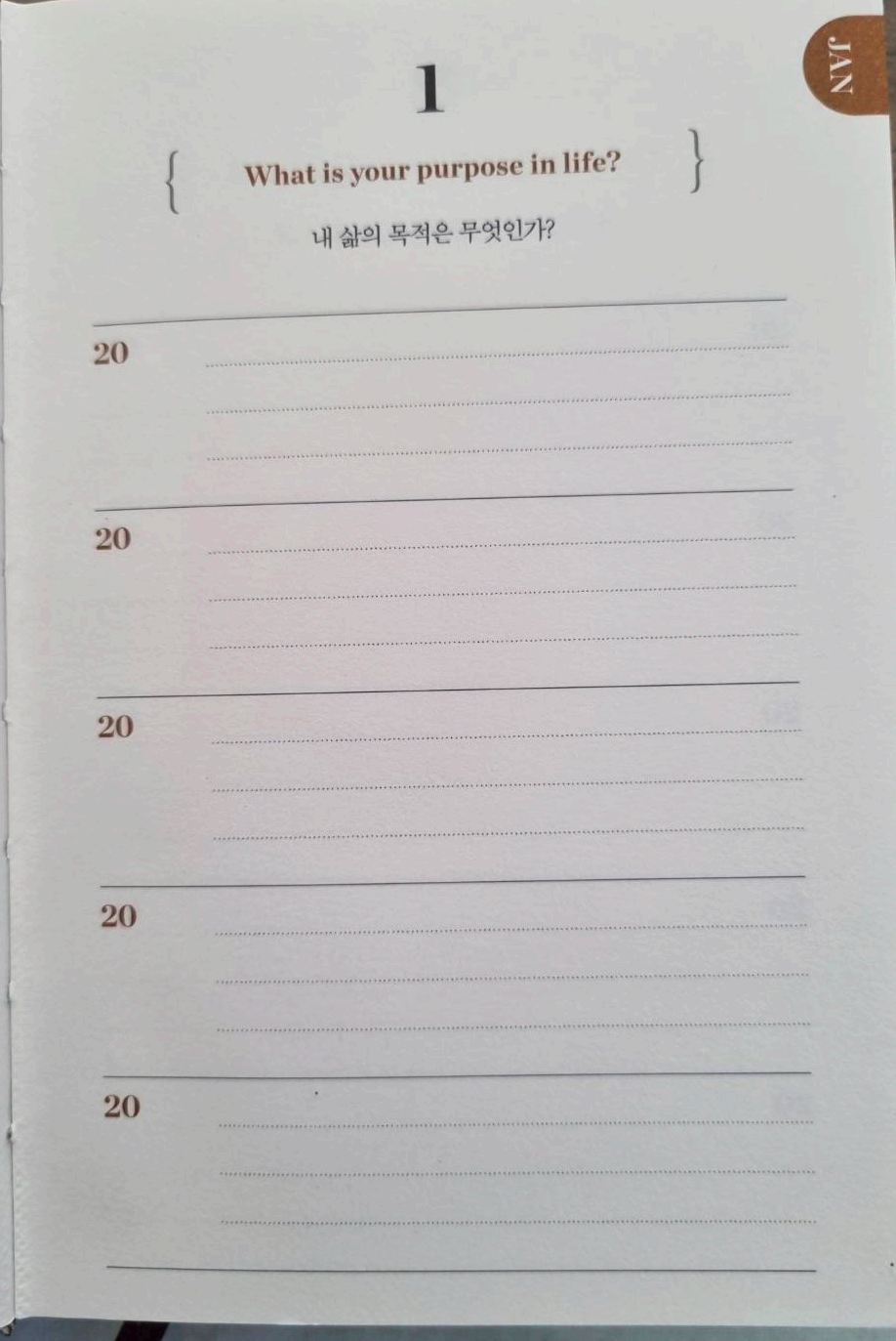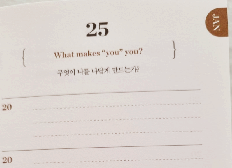 "한 해가 지나면 다음 칸에 같은 질문에 대한 답을 다시 적습니다.